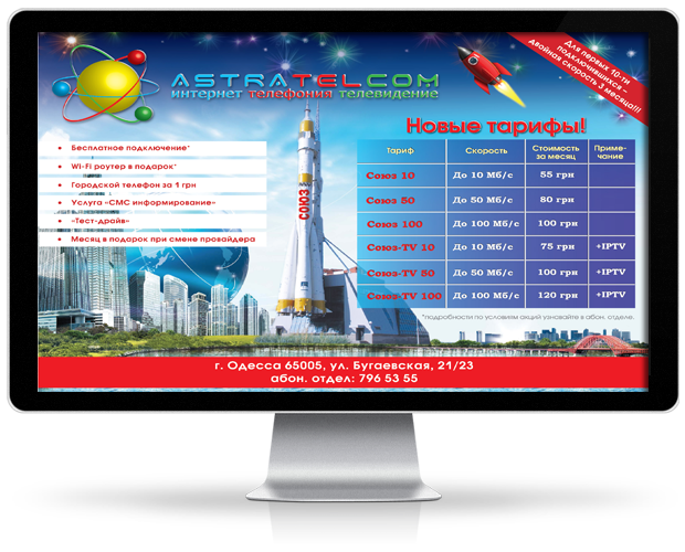 | Примечание: В стоимость пакетов входит предоставление почтового ящика @astra.od.ua объемом 20МБ | ||